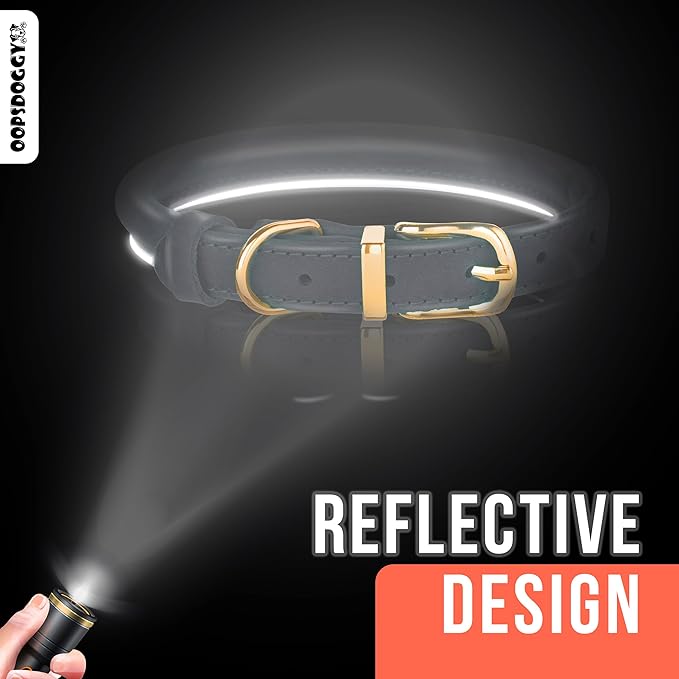 OOPSDOGGY Reflective Rolled Leather Dog Collar for Large Dogs, Adjustable Soft Padded Pet Collar for Large Breed Dogs (L, 14"-18", Brown)