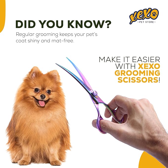 - 😊 Without The Worries Behind - Each of XEXO’s curved dog scissors and other pet grooming products are completed by experienced craftsmen before it meets XEXO standard of excellence.