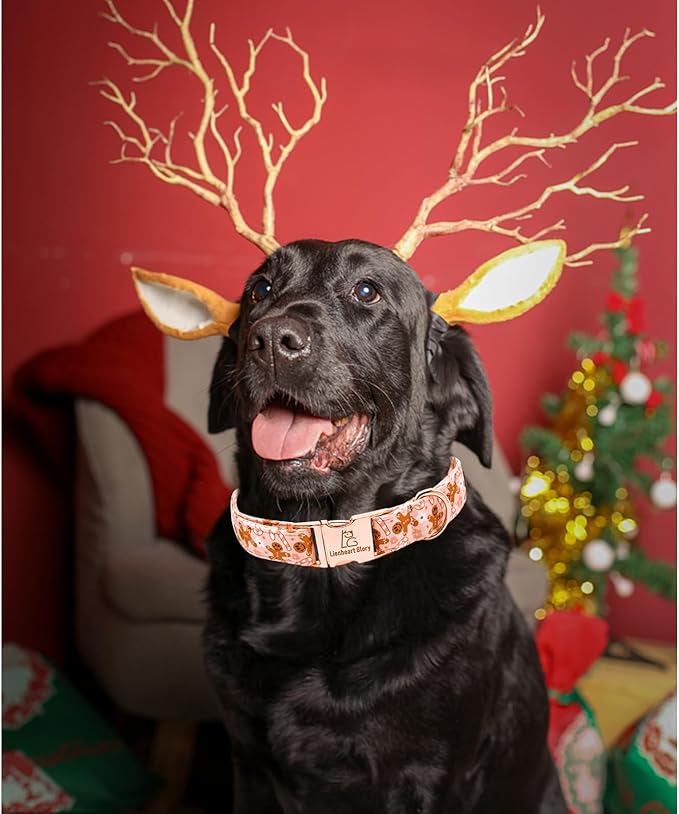 Lionheart glory Christmas Dog Collar Pink Collar Dog Adjustable Soft Dog Collars Gingerbread Man Dog Collars for Small Medium Large Dogs Female or Male Pet Collar