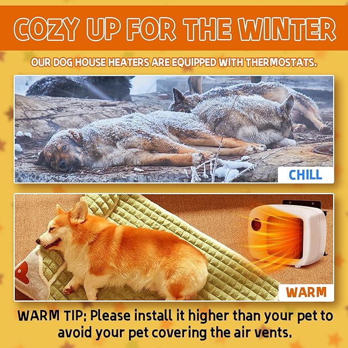 - Certified Warmth: Our pet house heaters aren't just cute; they're certified cool. ROHS and UL certifications, a PTC heating element, and high thermal efficiency make them perfect for not only dog houses but also chicken coops, rabbit havens, and piggy paradises. Winter, we're ready for you!