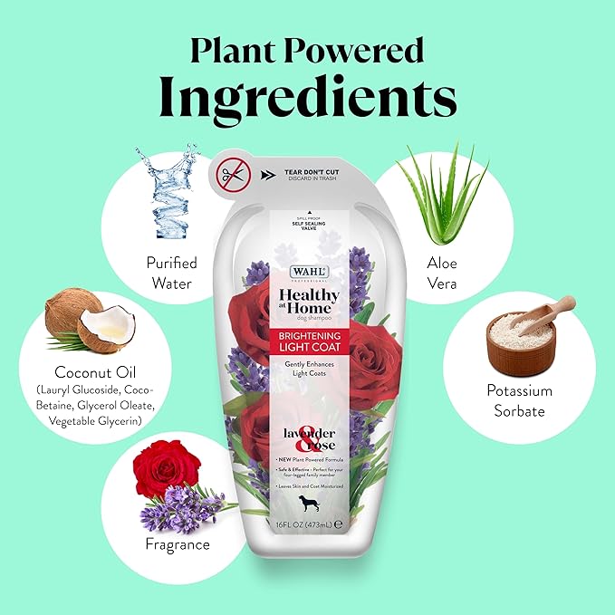 Wahl Professional Animal Healthy at Home Dog Shampoo - Plant Powered Grooming Shampoo - Brightening Light Coat
