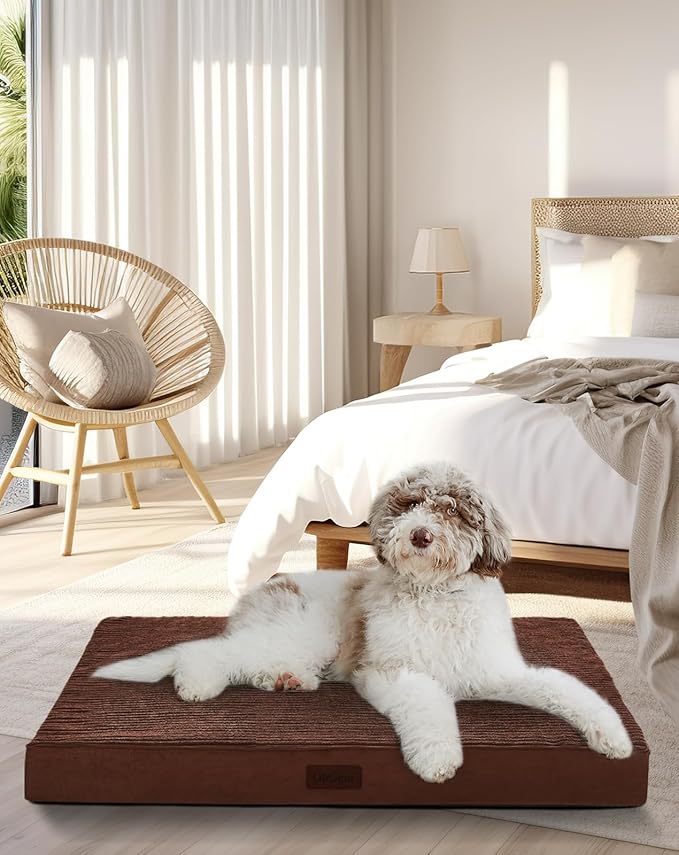 OhGeni 35 Inch Orthopedic Waterproof & Machine Washable Dog Bed with Egg Crate Foam Support, Non-Slip Bottom and Removable Pet Bed Cover for Extra Large, Large, Medium, Small Dogs (Brown)