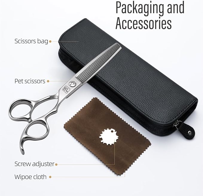 - Features: This pet blender scissors are available in 6.5 inches with ergonomic handles, suitable for most people. Finely polished, frosted surface, fine metal texture. precise adjustable screws effectively prevents screws from loosening due to prolonged use