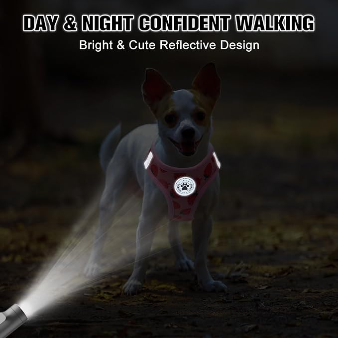 BEAUTYZOO Step in Dog Harness and Leash Set,Reflective Dog Harness No Pull No Choke Puppy Harness for Small Medium Large Dogs Cats,Soft Padded Mesh Vest Harnesses for Girl and Boy Pets, Strawberry S