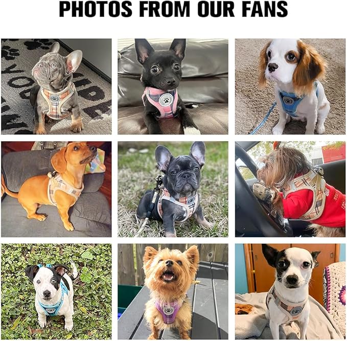 - Escape Proof, No-Pull Dog Harness: With a step-in design, it is easy to put on or take off the puppy harness in just a few steps. Simply Step in, Wrap and Buckle for a secure fit. The heavy duty buckle fastens securely to keep the dog walking harness closed while playing, ideal for walking, jogging, hiking, training, etc. Pet owners will love this small dog harness.