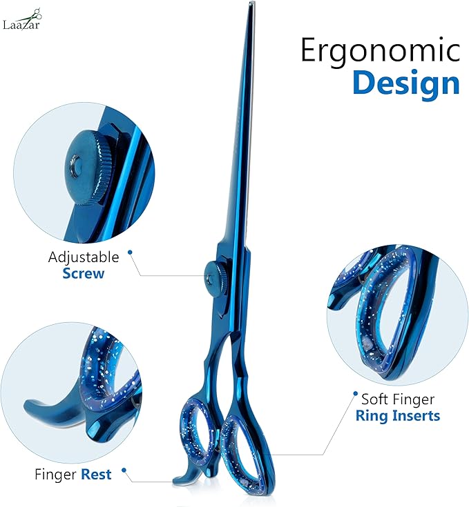 Laazar Dog Grooming Scissors - 7.0 Inch Straight Grooming Scissors for Dogs, 440C Stainless Steel Pet Grooming Scissors with Finger Rest & Case, Dog Shears for Grooming, Cat Grooming Supplies
