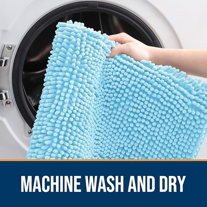 OLANLY Dog Door Mat for Muddy Paws 47x32, Absorbs Moisture and Dirt, Absorbent Non-Slip Washable Mat, Quick Dry Chenille, Mud Mat for Dogs, Entry Indoor Door Mat for Inside Floor, Blue