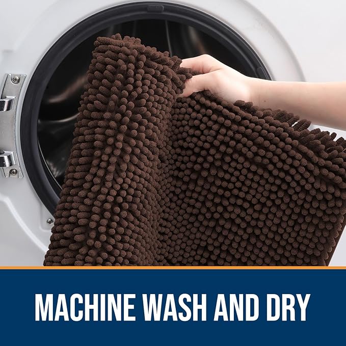 OLANLY Dog Door Mat for Muddy Paws 24x16, Absorbs Moisture and Dirt, Absorbent Non-Slip Washable Mat, Quick Dry Chenille, Mud Mat for Dogs, Entry Indoor Door Mat for Inside Floor, Brown