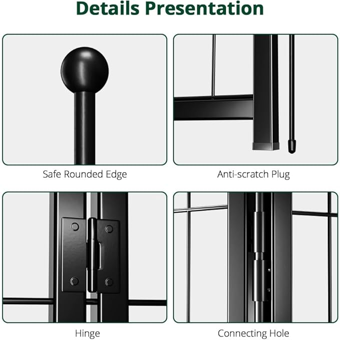 - 【Prevention of escape】The dog pen is an excellent caretaker. The 32"H height is high enough to prevent escapes. The gravity automatic invisible door lock is different from traditional door latches and prevents pets from opening the door on their own. When you want your pet to stay in a safe area and enjoy its own time, don't worry about it being smart on its own Open the door.