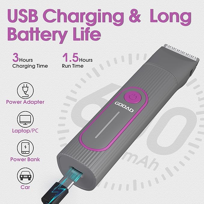 - 【Long Lasting Battery】2200mA High Capacity Li-ion Battery, charging for 3 hours and can sustain use of 250 minutes.for reminding using and charging. Rechargeable design of this cat clipper, also be connected to a USB ,you don't have to buy replace batteries.