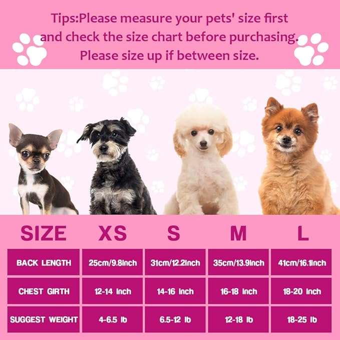 - XXS/XS/S/M/L Size to Choose: Five sizes are available for pets of all sizes as well as dogs and cats. Please refer to our size chart carefully and choose the most suitable easter dog clothes for your pet