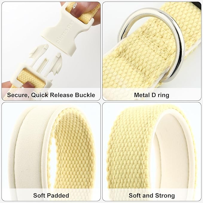 Plutus Pet Cotton Dog Collar, Heavy Duty Collar with Soft Padding, Adjustable and Comfortable for Small Medium and Large Dogs, Light Yellow, L