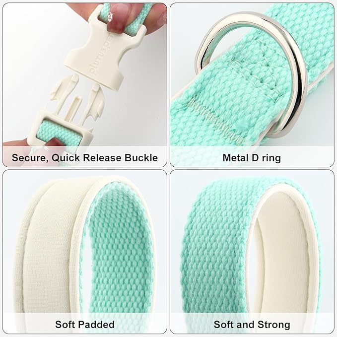 Plutus Pet Cotton Dog Collar, Heavy Duty Collar with Soft Padding, Adjustable and Comfortable for Small Medium and Large Dogs, Light Cyan, XS