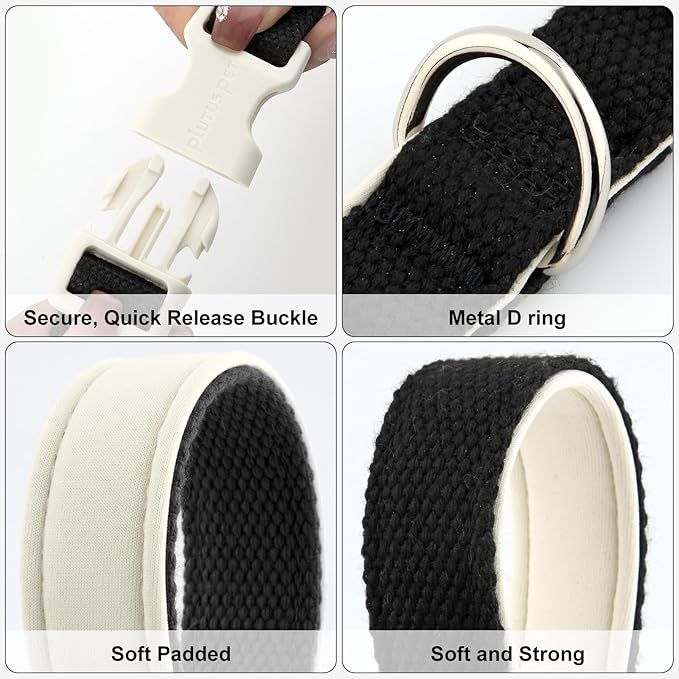 Plutus Pet Cotton Dog Collar, Heavy Duty Collar with Soft Padding, Adjustable and Comfortable for Small Medium and Large Dogs, Black, L