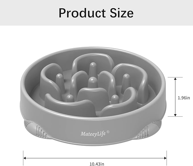 MateeyLife Large Slow Feeder Dog Bowls, Anti-Choking Puzzle Dog Food Bowls, Anti-Slip Interactive Feeding Slow Down Eating, Bloat Stop Maze Dishes for Large Breeds 4 Cups Gray