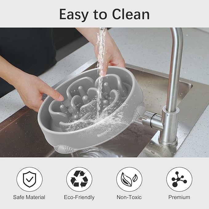 - Easy To Clean: Our slow feed dog bowls for large dogs, slow feeder bowl dry food and dog bowls that slow down eating are top-rack dishwasher safe, or another choice for you is to simply spray with warm, soapy water and rinse! The less workload you have on the puppy food bowl, the more playtime you can spend with your puppy! Slow dog feeder bowl and slow feeder dog bowls large breed is an interactive dog feeder for large dogs for your pets, as well as a good helper to ease your workload