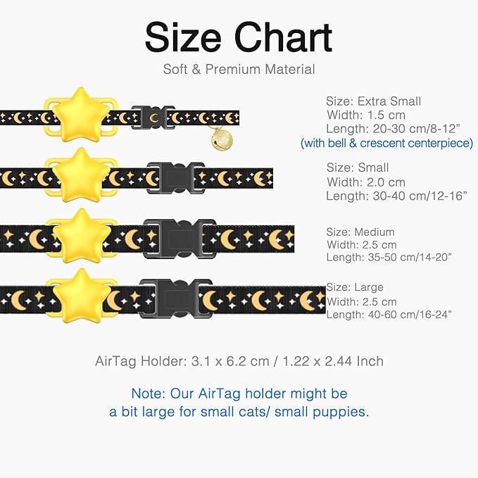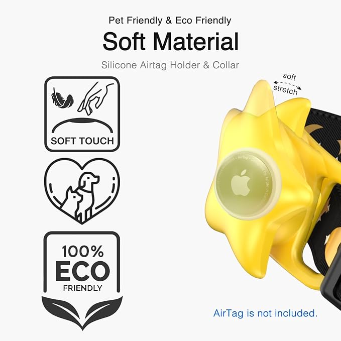 - 【Stylish & Eye-catching Design】Featuring an exclusive moon and star design collar and adorable sun-shaped AirTag holder, your dog will not only be safe but also make a fashion statement. Prepare for an influx of compliments on your dog's stylish appearance.
