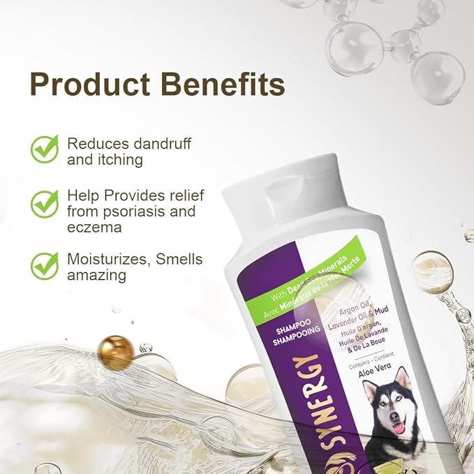 - [Dead Sea Mud and Minerals): Harnesses the natural properties of Dead Sea mud and minerals to gently cleanse and soothe your dog's skin, providing relief from itching, irritation, and inflammation.