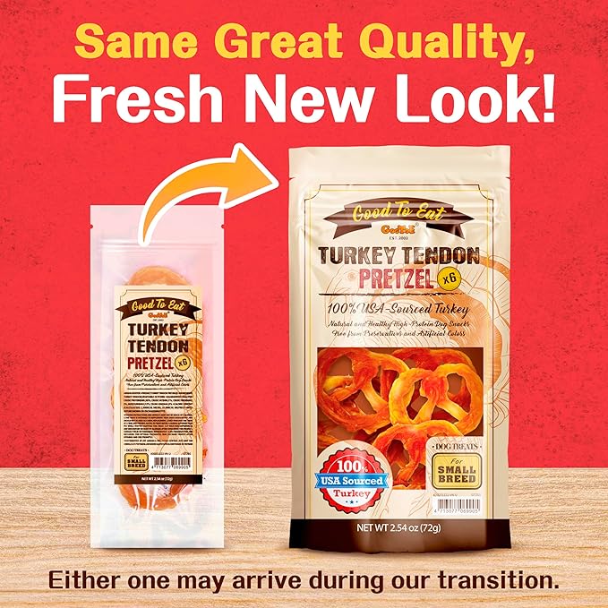 Gootoe Turkey Tendon Dog Treats – 100% USA-Sourced, Natural Snack, Premium Training Chews, Hypoallergenic, Reseal Value Bags, Size for Small Dogs, Pretzel (Small) 6 Unit/Pack