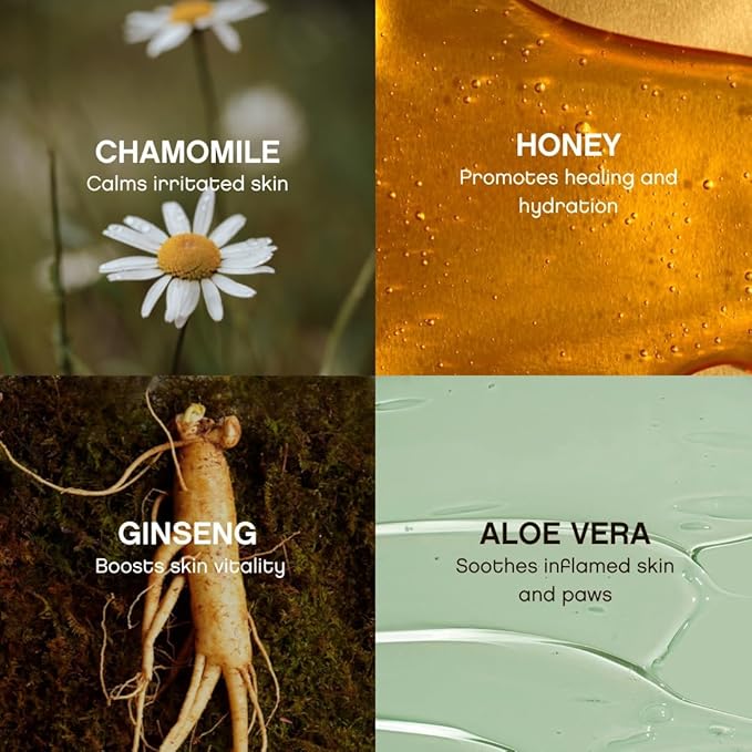 • Natural moisture & freshness: Our wipes are infused with nature's finest ingredients, including soothing aloe, calming lavender oil, healing chamomile, and revitalizing ginseng. These ingredients work together to provide deep moisture and relief from irritated or dry skin, leaving your dog’s coat soft and nourished. The wipes also impart a light, fresh scent without the use of artificial fragrances or harsh chemicals, ensuring a natural and refreshing clean every time.