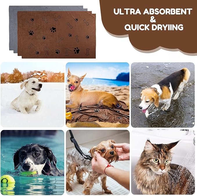- Cute Style: 2 microfiber pet towels are in gray and the other 2 in coffee; They are designed with a classic bone print pattern, indicating that they are made for pets; They can be applied not only by your own dogs, but also as gifts for a friend's beloved dog