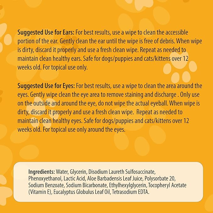 - Our pre-moistened pet wipes are perfect for daily use to control wax buildup in the ear and keep the eyes of your fur baby free of debris.