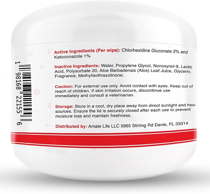 Amate Medicated Dog Wipes for Ear Skin & Coat - Pet Wipes for Dogs & Cats - 2.5” Small Wipes - Relieve Skin Issues, Hot Spots & Irritation - Pack of 50