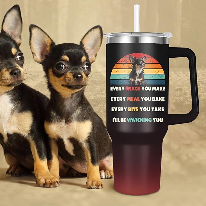 Chihuahua Tumbler for Dog Owner Gift,Chihuahua Water Bottle with Handle Insulated Reusable Stainless Steel 40oz (Chihuahua)