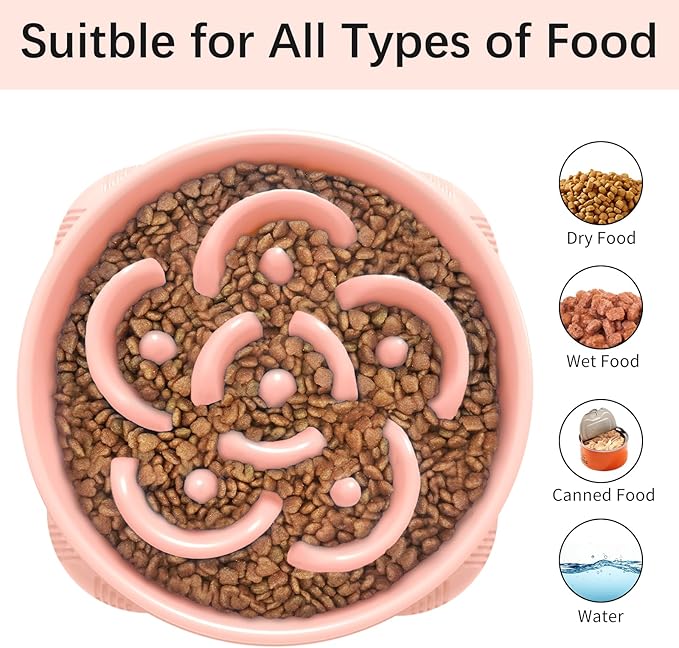 - Food Diversity & Safe Material: Dog dishes to slow down eating applies to dry, wet, and raw food diets. This slow feeder dry food and puppy slow feeder bowl can hold up to 4 cups of kibbles. Large dog slow feeder bowl is made of PP polypropylene material which is food-safe and non-toxic so that your puppies can feel free to use it. These slow feeder dog bowls are serviceable, stand wear and tear, not easy to damage, so your lovely pups could regale on their meal safely