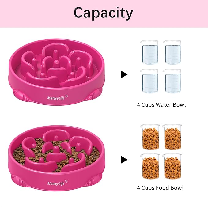 - Food Diversity & Safe Material: Dog dishes to slow down eating applies to dry, wet, and raw food diets. This slow feeder dry food and puppy slow feeder bowl can hold up to 4 cups of kibbles. Large dog slow feeder bowl is made of PP polypropylene material which is food-safe and non-toxic so that your puppies can feel free to use it. These slow feeder dog bowls are serviceable, stand wear and tear, not easy to damage, so your lovely pups could regale on their meal safely