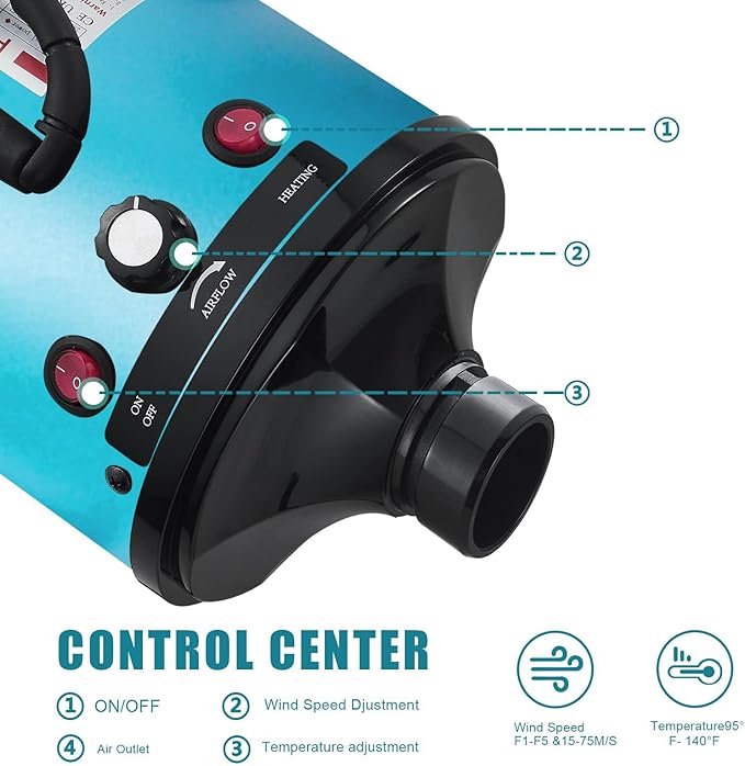 - Professional Accessories: the blow dryer has 4 different nozzles to meet your various drying needs, you can also use it in car, floor, furniture and other scenarios. The hose is retractable, metal body shell, unique design makes less noise when using it