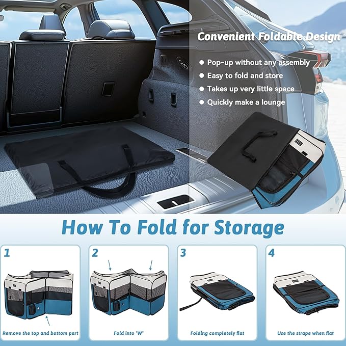 - Simple Setup & Portability:This lightweight portable pet playpen comes with a carrying bag for easy transport, sets up quickly and folds flat, includes two pockets and a water bottle holder, ideal for travel and camping with no assembly required