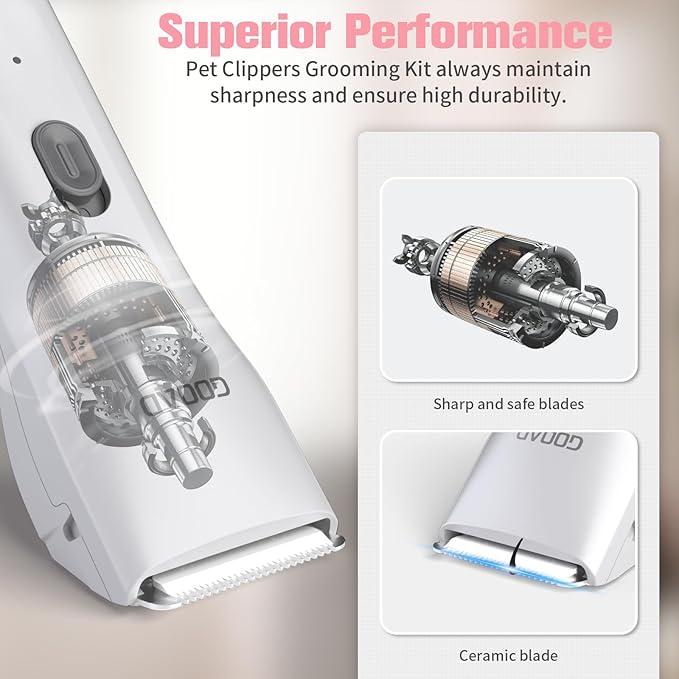 - 【Easy to Use & Clean】- Gooad cat grooming clippers is only 4.7 * 1.7 * 1.18 inches, cat hair trimmer is easy to grip.Lightweight, cordless and ergonomic design allows for super maneuverability and comfortably grooming experience. The blade part of dog clippers for grooming can be removed for cleaning and underwater cleaning.