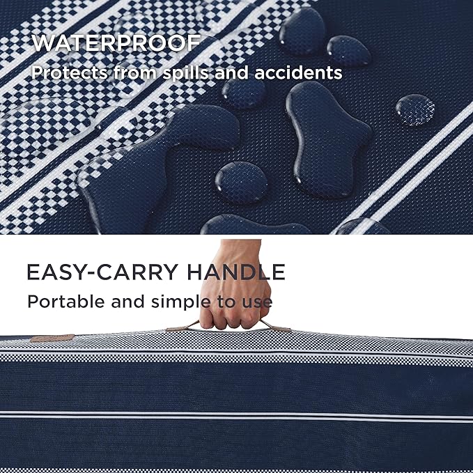 Bedsure Jumbo Large Patterned Dog Bed for Large Dogs, Outdoor Waterproof Orthopedic Egg Foam Dog Bed Comfort Pet Mats for Crate with Removable Washable Cover(54"x44", Navy Blue)