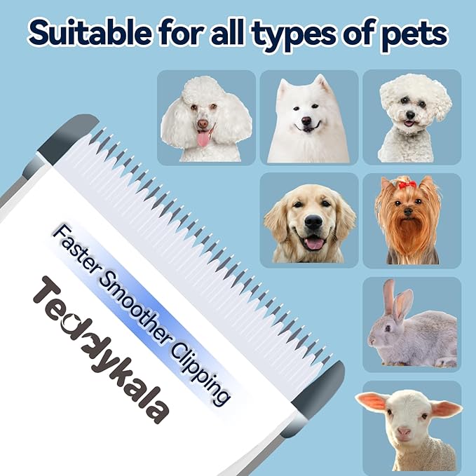 - 【33 tooth dense tooth Detachable blade for safety and sharpness】 Removeable cutting head is easy to clean, and the upgraded R-shaped rounded ceramic blade is sharp enough not to rust or burn easily. It is also very suitable for trimming small areas such as claws, ears, and eyes. No hair stuck, no scalding,33 tooth dense tooth cutter head,Adopting professional wool shearing standards.