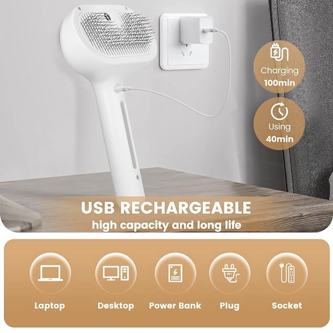 - 【Rechargeable Steam Cat Brush for Furry Pet】: No more hassle with batteries! With a USB-C rechargeable design, our grooming tool is eco-friendly and always ready for action. Keep your pet looking their best without constantly replacing batteries. USB C Cable Included!