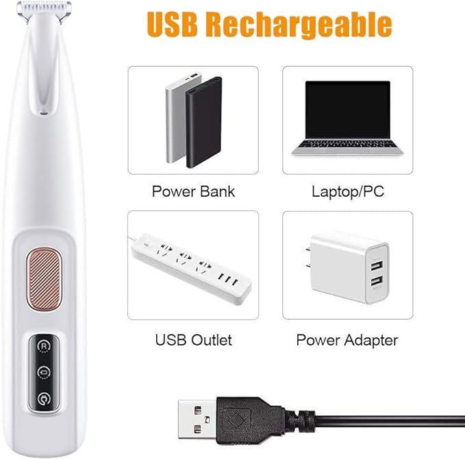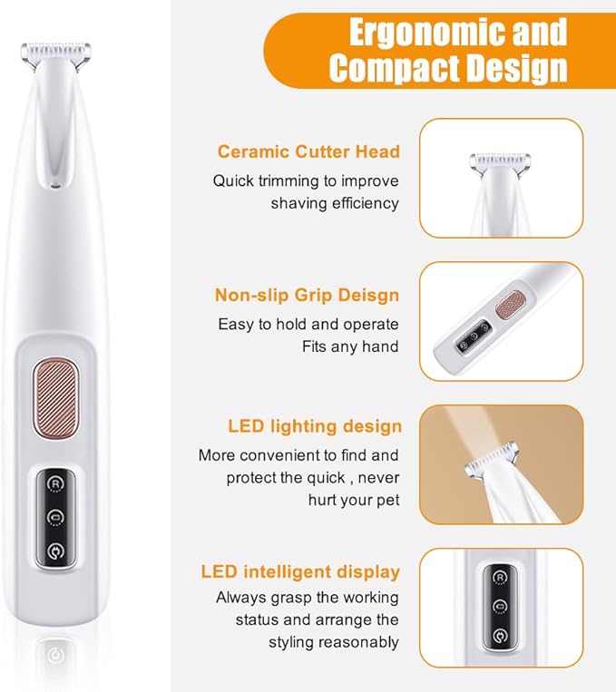 MiOYOOW Dog Clippers, Low Noise Dog Paw Trimmer USB Rechargeable Pet Shaver with LED Light & Widen Blade for Grooming Pet Paws, Eyes, Ears, Face Hair