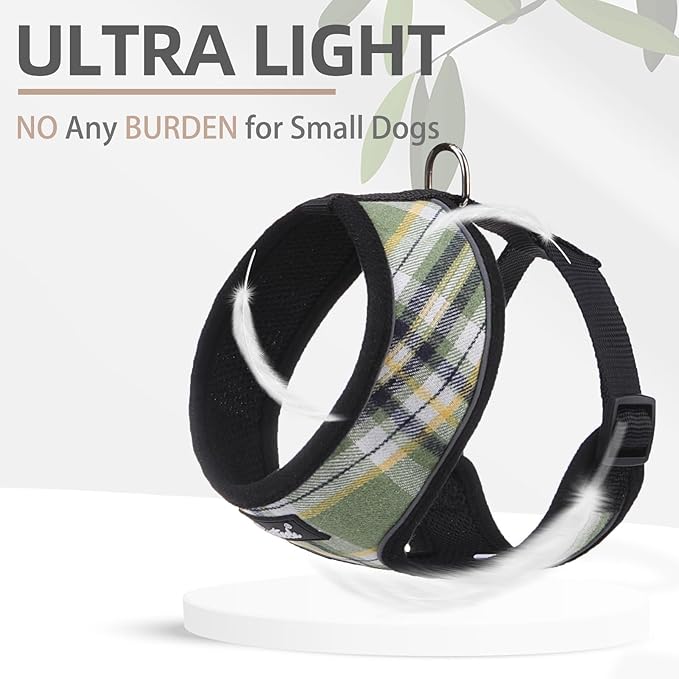 - DIFFERENT DESIGN: The harness is adopted with a plaid pattern which is designed by our internal brand team, so it's unique and very different from other normal harnesses. This plaid pattern looks both classic and stylish and is never out of date. It's great for everyday walking or going to a holiday party. It makes your furry friend look so lively and cute