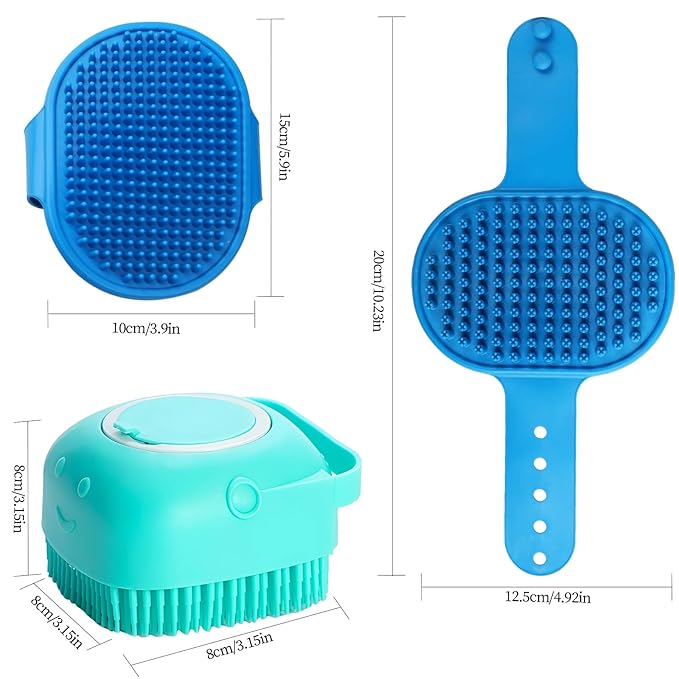 - Perfect Pet Bath Brush Set : This dog shower brush set contains 3 PCS brushes with different functions, which can effectively solve your pet's bathing, hair removal, massage, grooming problems.