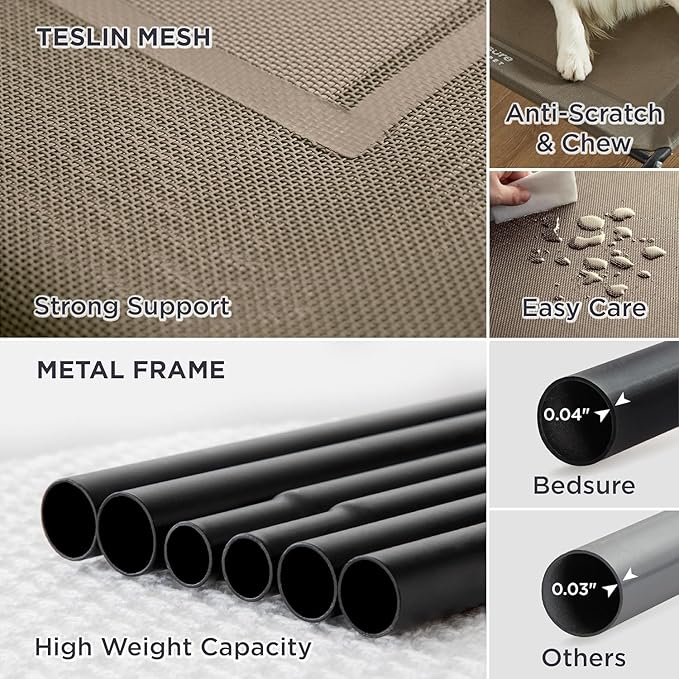 - Strong & Durable: Heavy-duty Teslin mesh holds up against scratching and chewing, providing excellent support and even pressure distribution to reduce joint and muscle pain. The strength-tested lightweight metal frame supports dogs up to 75 lbs.