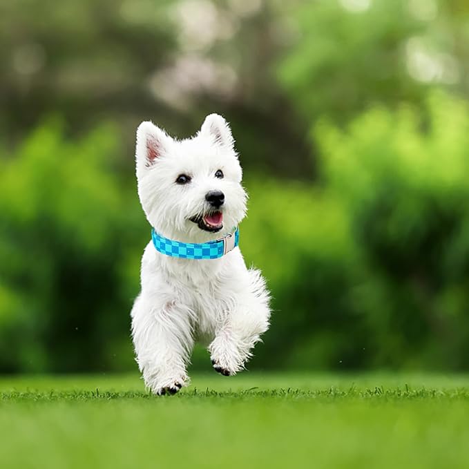Maca Bates Checkered Mint Blue Dog Grid Collar for Small Dogs Adjustable Plaid Collars Accessories Gift for Small Medium Large XL Puppy with Golden Metal Buckle