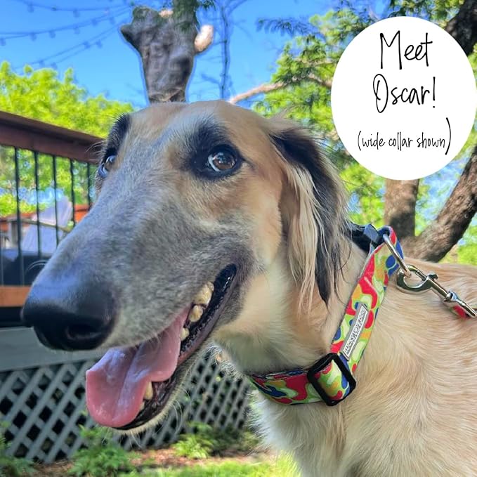 Lucky Love Dog Wide Dog Collar - Adjustable, Durable, Soft Webbing, & Comfortable 1.5 inch Wide Collar for Dogs Male and Female - in Oscar Pattern with Strong Buckle, X-Large Size