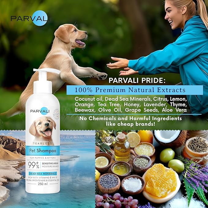 - DELICATE & SENSITIVE. Introducing PARVALI TEARLESS PET SHAMPOO, crafted with love for puppies & kittens. Gentle and safe to use around the eyes and sensitive areas, ensuring a tear-free and soothing bath time experience.