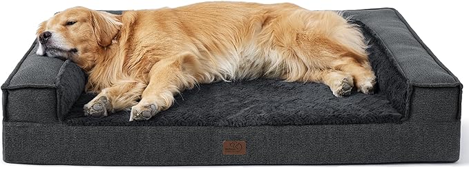 Bedsure Orthopedic Dog Bed for Extra Large Dogs - XLplus Egg Foam Dog Sofa, Bolster Couch Pet Bed with Removable Waterproof Washable Cover, Comfy Plush Velvet Fluff Surface, Nonskid Bottom, Charcoal