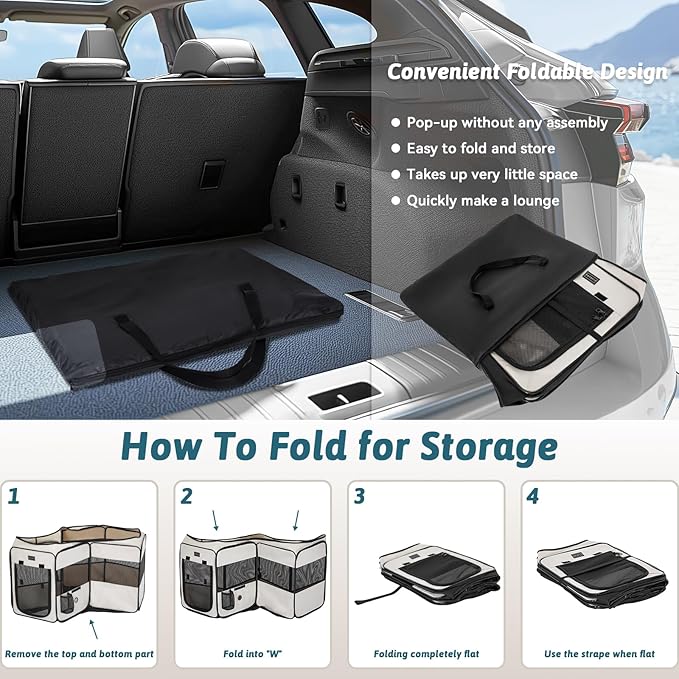 - Simple Setup & Portability:This lightweight indoor pet playpen comes with a carrying bag for easy transport, sets up quickly and folds flat, includes two pockets and a water bottle holder, ideal for travel and camping with no assembly required