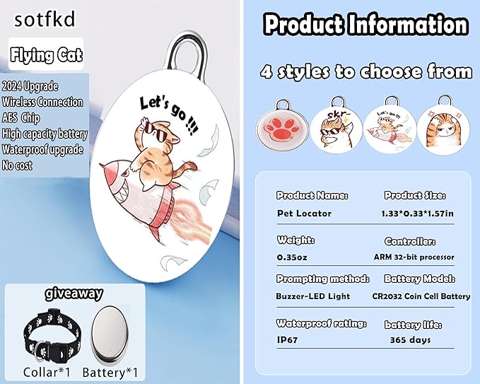 - 【Built-in Speaker】Our cat tracker helps you find things nearby by playing sounds to indicate location. The cat tracker weighs only 10 grams and the included tracker collar is durable and drop-proof. The cat tracker battery has a standby time of up to 12 months and is easy to replace for long term use.