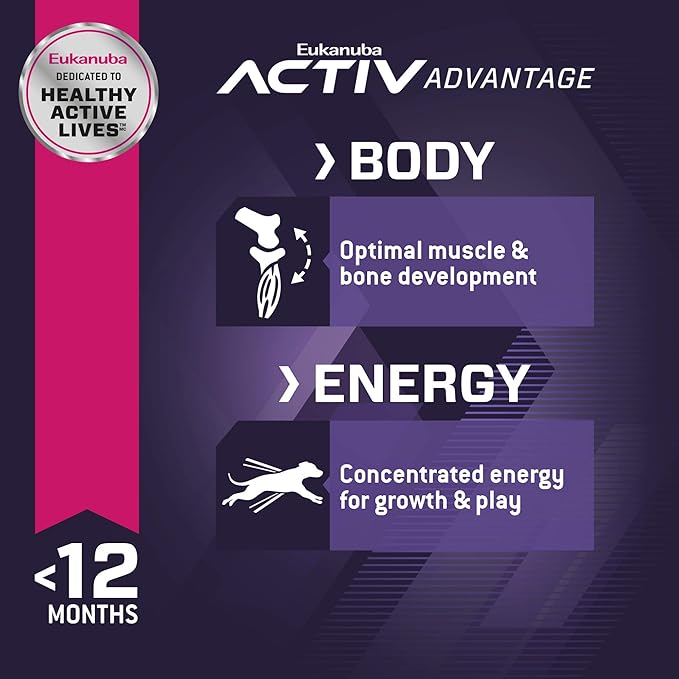 - Supports muscle growth and bone health in active pups with high-quality animal protein and optimal levels of calcium and phosphorous