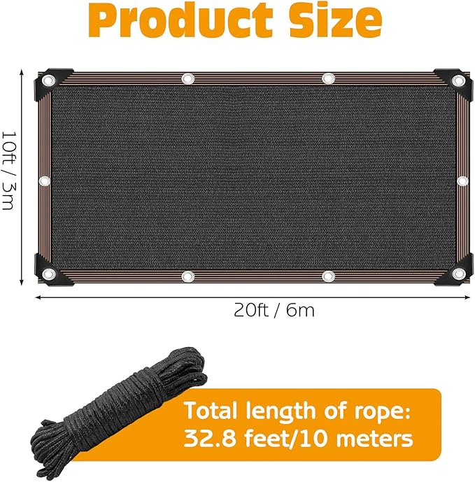 • Easy to install: Lightweight dog house shade net can simply thread the rope through the metal loop grommets on the shade netting to secure it easily; Comes with 32.8 feet/10 meters of secured rope that can be cut to suit individual needs