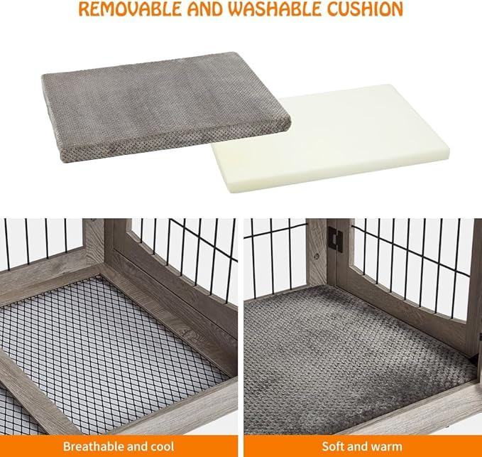 - 【Dog Kennel Indoor with Cushion】Matching cushion in the crate take your dog a warm and more comfortable sleep, and also we use the metal net at the bottom, better air permeability.