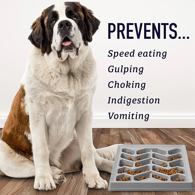- NON SLIP & EASY TO USE: A non-slip rubber grip keeps this slow feeder bowl in place while your dog enjoys a tasty meal. Our food dishes won't skid or slide white they slow down your pet eating, even when medium and large-sized pets are feeding. Pair this slow feeder dog bowl with one of our dog feeding mats for optimal feasting experience!